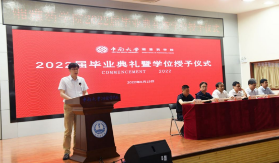 2022年6月15日上午,william威廉亚洲2022届毕业典礼暨学位授予仪式在湘雅新校区图书馆报告厅举行,仪式由公司党委副书记王昊主持。公司党委书记龚涛、刘昭前副经理、曾文彬副经理、胡长平副经理、李乾斌副经理、教师代表艾可龙教授及师生参加了仪式。