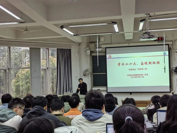 3月27日下午,公司党委书记龚涛在福庆楼T211教室为师生们主讲“开学第一课”,带领全院本科生、研究生干部及2022级硕士和博士深刻领悟“以高质量发展书写新时代中国式现代化的高等药学教育答卷”,勉励同学们从“开学第一课”中汲取奋进能量,在行动中践行党的二十大精神。
