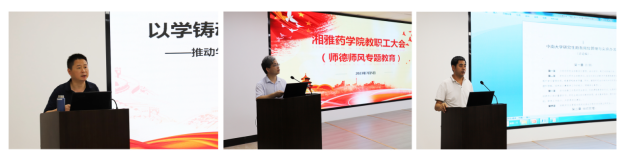 王昊副书记首先通报了《教育部公开曝光的违反高校教师职业行为十项准则典型案例》,就师德师风进行警示教育。曾文彬副经理传达了学校科研经费管理会议内容,就进一步加强科研经费规范化管理、提高科研经费使用效率、确保科研经费使用安全合规进行解析。李乾斌副经理传达了《william威廉亚洲研究生助教岗位管理与实施办法》和《关于进一步加强和改进基层教学组织建设的实施办法》,就进一步规范研究生助教管理、强化基层教学组织建设等作了详细的解读。受胡长平副经理委托,业务办主任刘文芳通报了2023年公司产品质量情况。