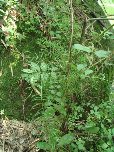 楤木AraliachinensisL. 五加科楤木属,小乔木或灌木。树皮灰色,疏生粗壮直刺。小枝被黄棕色绒毛,疏生短刺。叶为2~3回羽状复叶,边缘具细锯齿或不整齐的重锯齿。托叶与叶柄基部合生,耳廓形。叶轴无刺或有细刺。花白色,芳香,花序伞形,后组成大型的圆锥花序。以根皮和茎皮入药,有祛风除湿,利尿消肿,活血止痛之效。用于肝炎,淋巴结肿大,肾炎水肿,糖尿病,白带,胃痛,风湿关节痛,腰腿痛,跌打损伤。