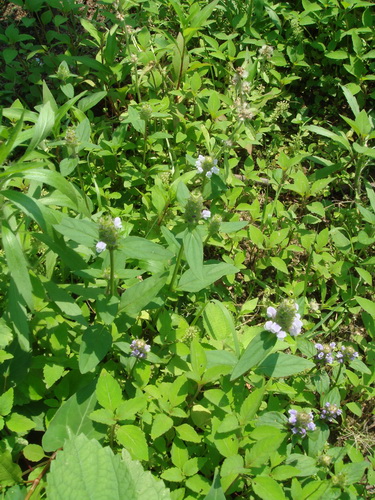夏枯草Prunella vulgaris,又称夏枯球,唇形科夏枯草属。多年生草本,茎直立,常带淡紫色,有细毛。叶卵形或椭圆状披针形,全缘或疏生锯齿。轮伞花序顶生,呈穗状;苞片肾形,基部截形或略呈心脏形,顶端突成长尾状渐尖形,背面有粗毛;花萼唇形,前方有粗毛,后方光滑,上唇长椭圆形,3裂,两侧扩展成半披针形,下唇2裂,裂片三角形,先端渐尖;花冠紫色或白色,唇形,下部管状,上唇作风帽状,2裂,下唇平展。茎、叶、花序入药,有清肝,散结,利尿功效。