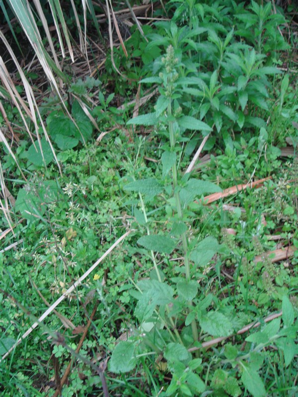 荔枝草Salvia plebeia R. Brown唇形科鼠尾草属。茎多分枝,被倒向疏柔毛。根出叶丛生,有柄,叶片长圆形或披针形,边缘有圆齿,叶面皱折,面丰有腺点,两面有毛;茎生叶对生。轮伞花序有2~6朵花,组成假总状花序或圆锥花序;花萼钟形,外被金黄色腺点及柔毛,分2唇,花冠淡紫至蓝紫色。全草入药,有清热,解毒,凉血,利尿之效。用于咽喉肿痛、支气管炎、肾炎水肿、痈肿;外治乳腺炎、痔疮肿痛、出血。