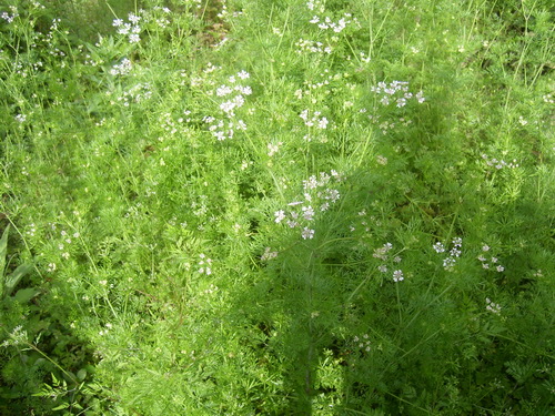野胡萝卜Daucus carota Linn. 伞形花科。茎单生,有倒糙硬毛。根生叶薄膜质,长圆形, 2回至3回羽状多裂,果实供药用,有驱虫的功效;果实可提取芳香油。