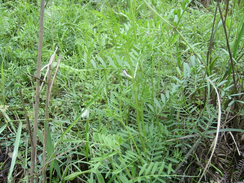 野豌豆Vicia sepium Linn. 豆科野豌豆属。多年生草本,根茎匍匐,茎柔细斜升或攀援,具棱,疏被柔毛。偶数羽状复,小叶5—7对,两面被疏柔毛,下面较密。叶轴顶端卷须发达,短总状花序,花2~4(~6)朵腋生;花冠红色或近紫色至浅粉红色,稀白色。根可以生吃,煮熟后味道更好,有补肾调经,祛痰止咳之效。用于肾虚腰痛,遗精,月经不调,咳嗽痰多;外用治疔疮。
