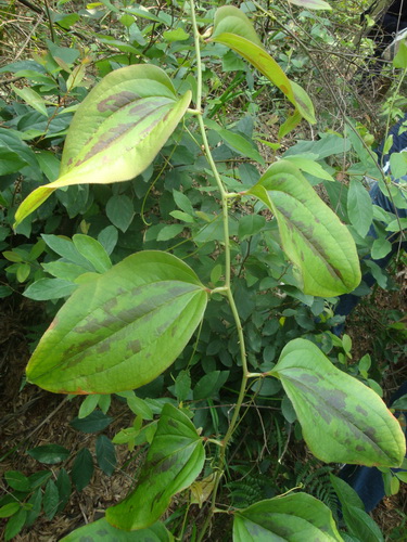菝葜细节图:示茎棱、皮刺和卷须、叶柄