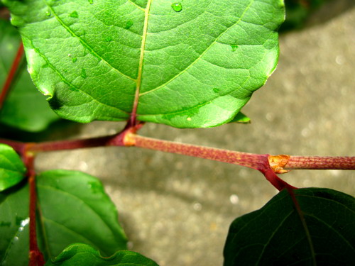 13、蓼科虎杖茎的观察:红色斑点及托叶鞘。