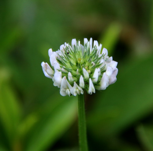 4、豆科蝶形花亚科车轴草属白花车轴草花序的观察:花蝶形,密集成球形的头状花序,有长总花梗。