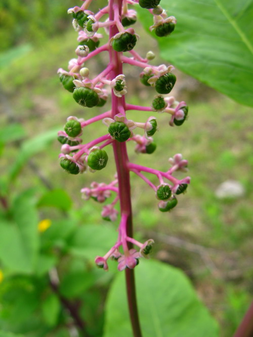 6、商陆科商陆茎、花及花序的观察:茎直立,具纵沟,总状花序顶生,花两性具小梗,小梗基部有苞片1及小苞片2;萼通常5片初白色,后变淡红色:无花瓣:雄蕊8,浆果扁球形通常由8个分果组成,熟时紫黑色。