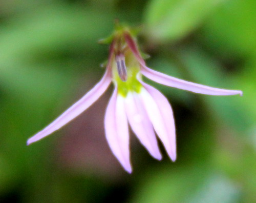 3、桔梗科半边莲花的观察:花瓣先端五裂,偏向一侧;雄蕊5,聚药,花丝基部分离。
