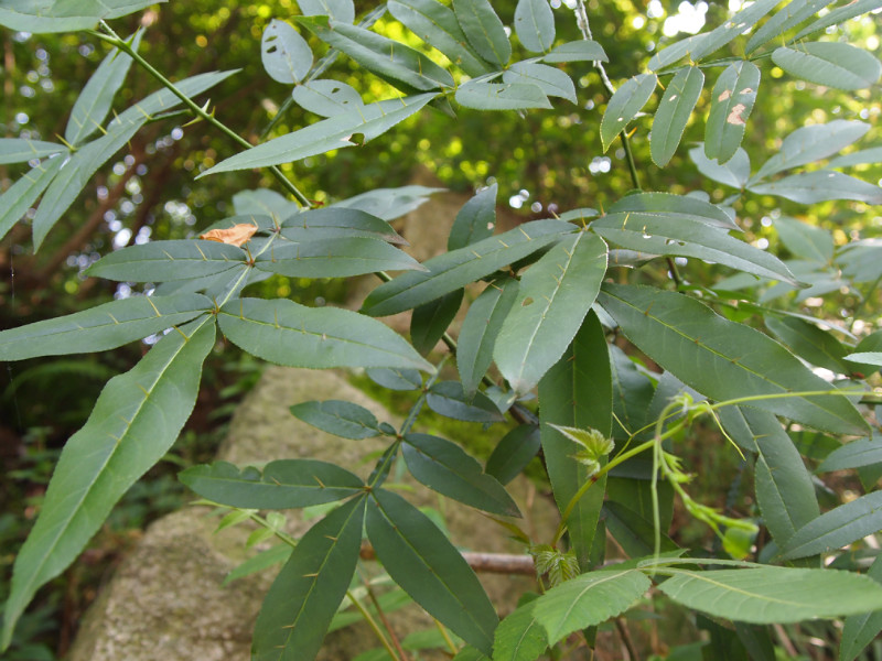 我们一直沿着蜿蜒乡间小路,虽然没有去爬那惊险的崎岖山路,但我们的厉老师实在是具有一双发现的眼睛,我们看到了广告里听说过的两面针、和两面针一样叶子带刺的杠板归、湘西的特产猕猴桃(只可惜没有结果实)、营养叶整齐孢子叶卷曲成线状的紫萁贯众、豆科植物南方枸杞,葛根、具有明目功效的千里光,小构的妹妹——桑科的变异小构,具有很奇怪名字的南刘寄奴(不知道会不会有北刘寄奴)……