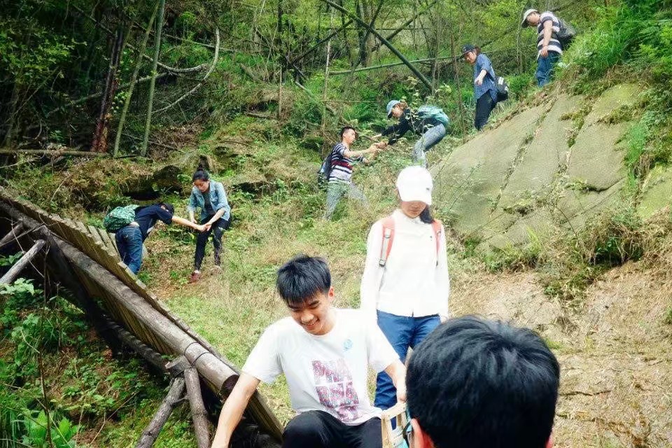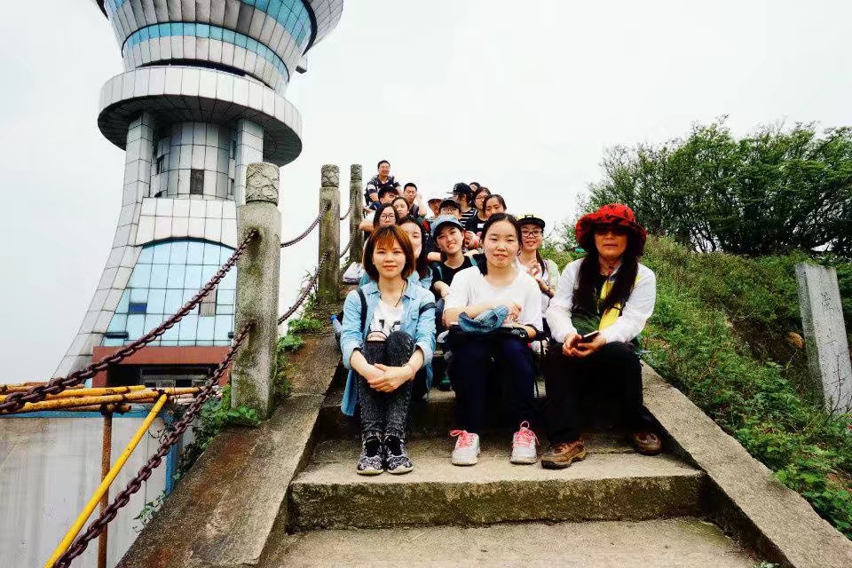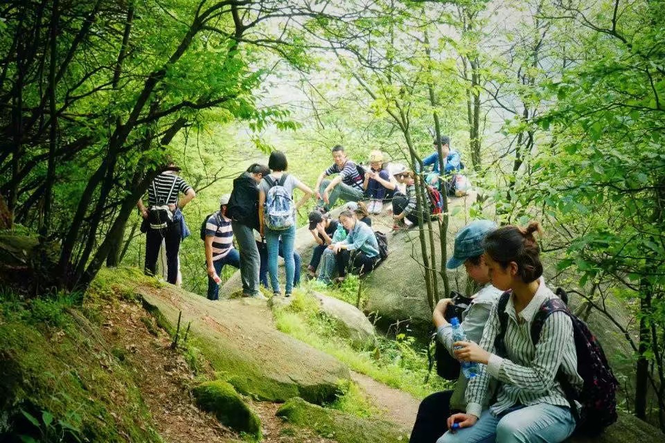 我们这组的经历比较特别,走过许多小路,又曾经四次原路返回当我们组的同学抱怨说不想再走小路的时候,老师教导我们,年轻人应该有探险精神。我想,是呀,我们是年轻人,人生的路上也不可能一帆风顺,总有要碰壁的时候,我们有时间去试错,就应该尝试,总有一条路是走得通的。于是一路上,我们听老师说着过去的见习故事,说着过去的这个地方发生的故事,大家吵吵闹闹,终于在大概12点半的时候走上了大路,并且在大路的路边,大家席地而坐吃了午餐,同学们大概都累坏了,互相分享食物,热火朝天地聊天。休息过后,我们就登上了山顶,在山顶留下了珍贵的合照。