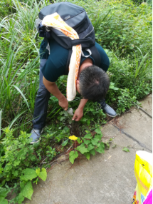 找到这株细辛,真的让我们兴奋了好久,别的植物挖了之后直接学完观察完之后就扔在蛇皮袋里,而细辛,为了保护他细细的根,我们还特地为他的根加了一层外衣-小塑料袋,来对他进行保护。能享受到这样待遇的植物,不仅仅是因为他的根易破坏,当然也是因为他是野外难得可以挖到的好植物。