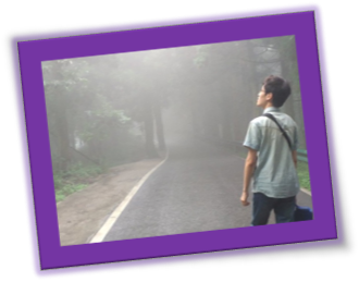 随着海拔的升高,空气中逐渐弥漫着淡淡的雾霭,而后雾霭越来越浓,直至白茫茫的一片。我们宛如漫步在仙境,任凭雾霭轻抚衣袖,发丝上沾着的水珠透着灵气,为这群仙童更添一份飘渺神秘。放眼望去,白茫茫的墙上刻画着苍翠的香樟,香樟散发的寒气从四周逸开,涣散在浓雾里,真可谓茫茫云海,让人大饱眼福。
