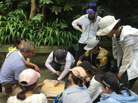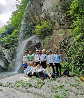 一路上认植物、学植物、做标本,感觉时间过得特别快。不知不觉走到了一个瀑布前,好像是叫下桎木潭,看到瀑布之后大家都非常开心,正好在瀑布下有几块大石头,这时有同学提议就在这里考试吧。于是同学们手忙脚乱地从袋子里拿出植物,分别摆在眼前,然后不约而同地开始一起朗读,麦冬百合科、菝葜百合科、黄独薯蓣科......就好像小员工晨读现场。等到考试的时候,发现平时在书本上那些很难记的植物竟然一下子都记住了,于是非常有成就感。这种边玩边学的方式不仅提高了学习效率,也让记忆更加深刻,更为我们带来了很多乐趣。