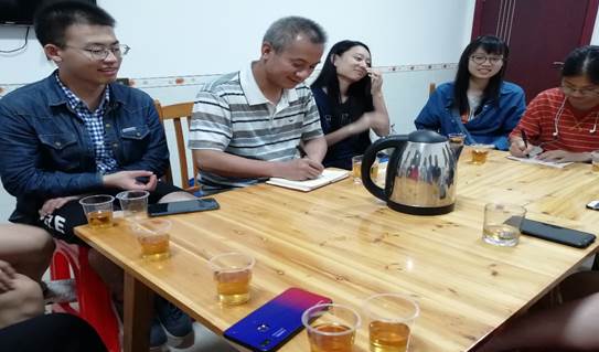 晚上,大家和老师开展了亦师亦友的茶话会,老师用今天采到金银花泡了一壶好茶,大家谈天说地,发表自己对采药实习的看法,我认为能够在繁重的考试中有机会见识大自然,和同学们一起学习、玩耍,这很难得,希望能够持续下去,不仅有助于我们学习,还有助于我们增进感情,一举多得。老师也很耐心听取我们的建议,记录在册,和我们像朋友一般相处。还指导我们压标本的正确技术和操作规范,大家受益匪浅,也将明天会考的一些植物经行整理和归纳。