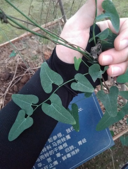 经过一段时间的自由认药后,我们跟随老师进行了系统的认药。经过老师的指导,我们开始更加注意植物的根、茎、叶、花、果实、种子的特征,从药用植物学的角度更加科学地识别药物,同时也经由老师的介绍了解到一些关于植物有趣的知识。例如牛膝这一药材的名字就来源于其茎节弯曲宛如牛的膝关节一样,金樱子又称为“鸟不落”就是因为它的茎上布满了刺,朱砂根又称为“腰缠万贯”是因为它的红色果实挂在枝头就像挂在腰上鼓鼓的钱袋子一样。这种有趣的记忆方式十分有利于我们掌握药植知识。