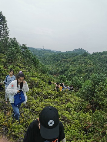 那天天气不错,虽然偶尔会下一点小雨但并不会特别晒,路途中说说笑笑也没有感觉很累。到达山顶之后,我们感受到了空前的喜悦,看着眼前的风景,心也变得宽阔了起来,又有阵阵清风吹过,让我们心旷神怡。但继续走着走着,大家发现了问题,因为我们发现找不到下山的路。也不是不能要走回头路,但是又有点不甘心。我们走过了一条崎岖的小路,艰难的下了山,发现到了别人家的院子里。而就在这时,我们又有两条路要选,一个是走公路回到药博园内,另一个呢是听从老乡的建议他带领我们走另外一条路回到药博园。从私心里来讲,我不想再累了,我想走公路,但老师的意思是,走公路的话路上没有药用植物就没有必要走公路。所以老师决定听从老乡的建议,走一条山路回去。然,这条山路走得可谓艰难险阻,痛苦万分。那草足足有一米多高,几乎是没有路,全是大家硬生生踩出来的。路途中还有许多带刺的植物,比如金樱子,哪怕大家都穿着长袖长裤,但仍然扎着一些同学很难受,甚至扎出了血点。而且由于刚下过雨,地上有些湿滑,路也是大家才踩出来的,再加上上山的路很陡峭,所以危险系数也很高。大家时不时发出惊呼,让这一次的旅程增加了几分“惊心动魄”。所幸在老乡的带领下以及在老师的帮助下,我们终于找到了正确的道路,下了山,回到了药博园。