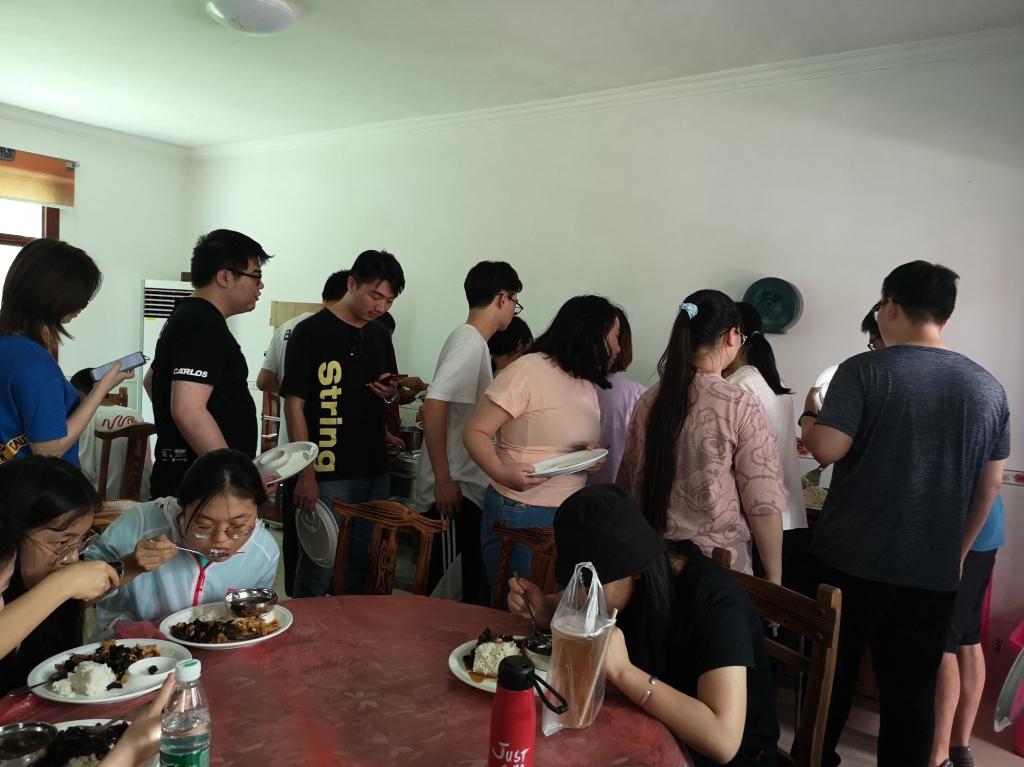 曾嵘老师组在教学间歇时与员工亲切交流。