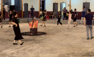 谈心过后,园里为我们准备了篝火晚会。“莫笑农家腊酒浑,丰年足客留鸡豚”,篝火畔,一张木桌上放着村民们特地准备的凉茶和西瓜,为这闷热的夏夜带来了一抹清凉。随着表演结束,在一片欢声笑语中,人们手拉着手围在篝火旁,共同庆祝今日之欢聚。那篝火不仅融化了夏夜,也把每个人的心交融在一起。