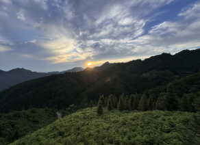 早上五点左右,看到天空已经放亮,我本以为错过了在山上的最后一个日出,忙穿好衣物向外走去,没想到运气好,太阳还未爬到山头。起初,山腰间,山顶上,还是飘着层层云雾。后来,伴随着鸟叫蝉鸣,山顶的最后一片云雾也被吹散,太阳终于漏出它火红的身体,将万丈光芒撒向山间。我用五官感受着这份温暖,感受着这份独一无二的宁静 再